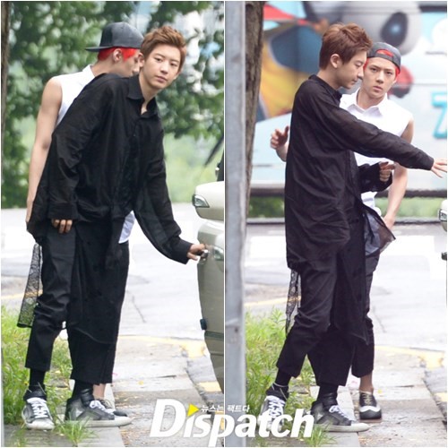 디오는 호기심 많은 멤버였습니다. 길거리에 버려진 우산도, 멤버들도, 나무도, 길거리도, 큰 눈으로 한 번씩 쳐다봐 줍니다. '소울메이트' 찬열과 진(?)한 눈맞춤도 나누더군요. 미남들끼리는, 시선으로도 통하나 보네요.