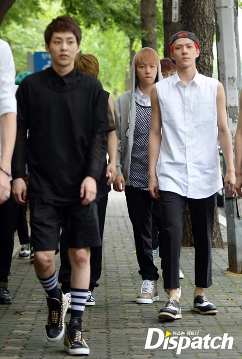 나머지 멤버들도 차례로 모습을 드러냅니다. 크리스, 시우민, 수호, 찬열, 루한 등이 1명씩 차에서 내리더군요. 평범한 도로가 순식간에 런웨이로 바뀌는 느낌? 네, 바로, 그 느낌, 맞습니다.